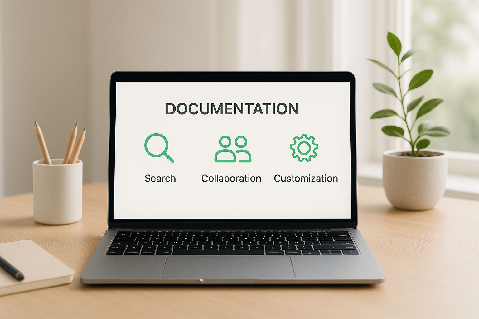 The image below breaks down the key features that define modern documentation platforms, showing just how important search, collaboration, and customization have become.