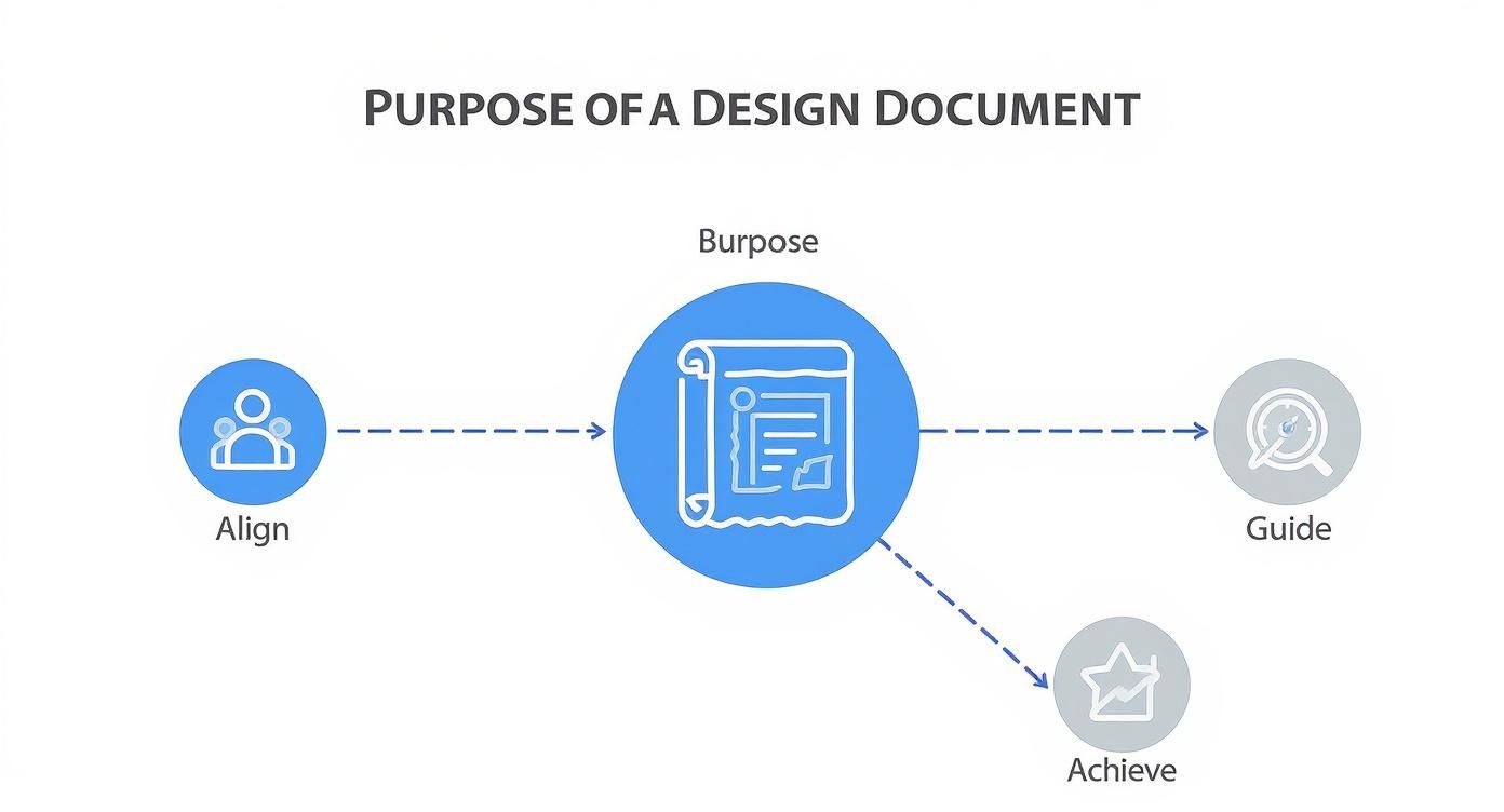 This infographic captures the essence of a design document: it’s the central blueprint that gets everyone on the same page, guides the actual development work, and keeps the project locked on its goals.