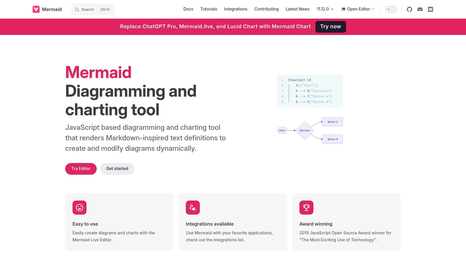 Mermaid is a unique entry among free UML diagram tools, operating not as a graphical editor but as a JavaScript-based diagramming and charting tool that uses a simple, Markdown-inspired text syntax. This “diagrams as code” approach is perfect for developers who want to embed consistently rendered diagrams directly into their documentation, wikis, and static websites. It eliminates the need for external image files, allowing diagrams to be version-controlled alongside source code in platforms like GitHub and GitLab.