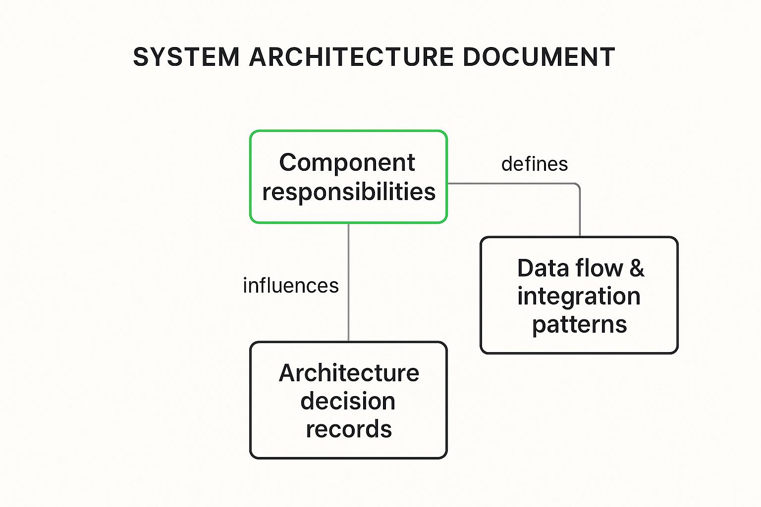 This visualization highlights how architecture decisions directly influence both component responsibilities and the integration patterns that define data flow.