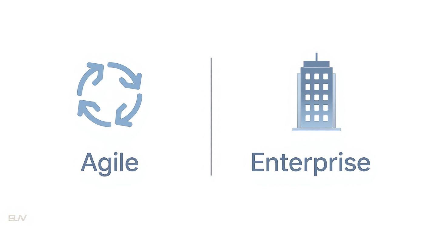 In software development, there’s no such thing as a one-size-fits-all approach. Trying to force one is a classic recipe for frustration. A rigid, heavyweight software design specification template will absolutely smother an Agile team in bureaucracy, while a loose, informal one can spark complete chaos in a large-scale enterprise project.