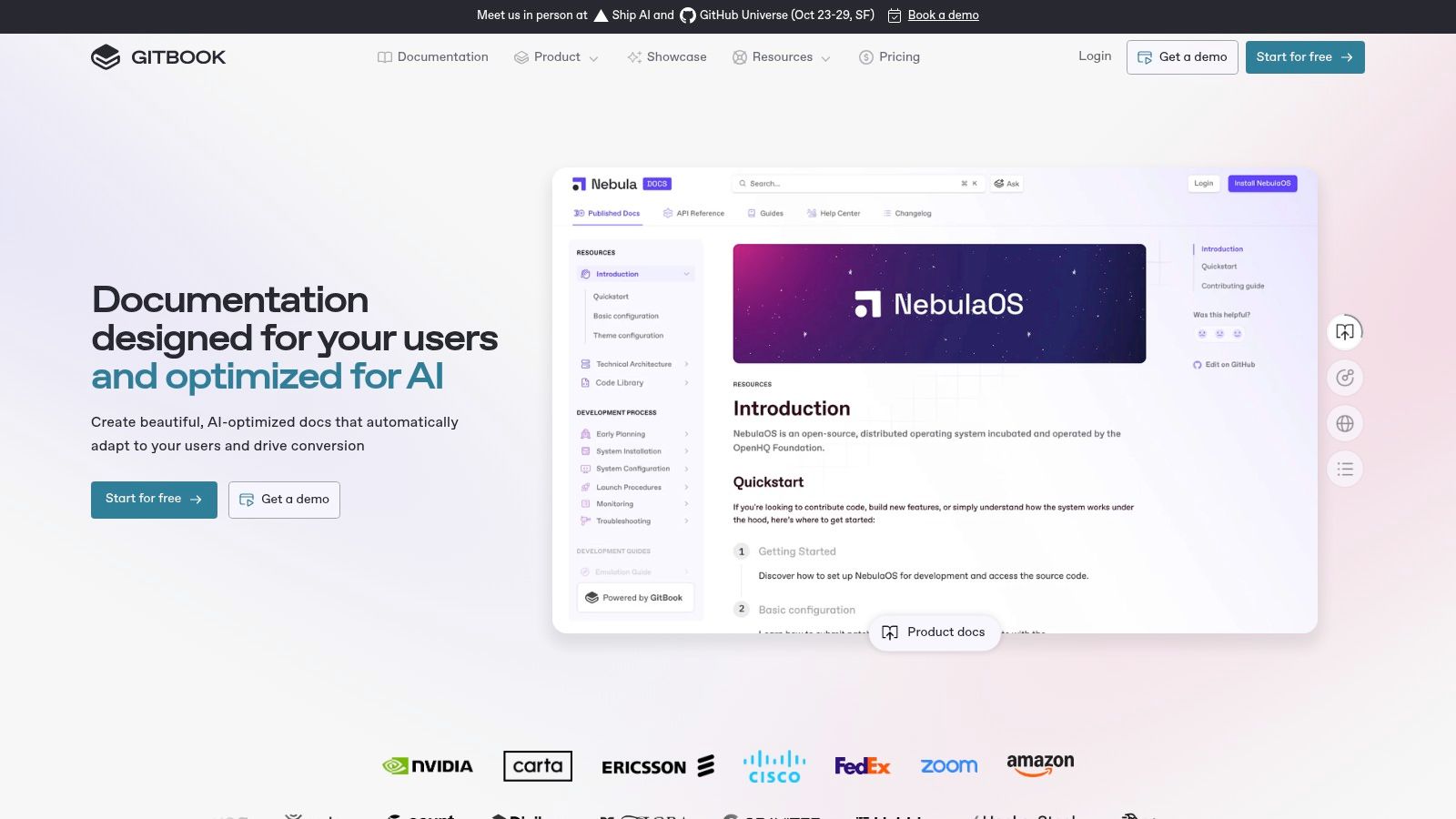 GitBook offers a modern platform for creating documentation, combining a block-based editor with a public showcase of software documentation samples. It serves as both a creation tool and a source of inspiration, hosting public documentation sites. This allows teams to see polished examples, but the creation process remains entirely manual.