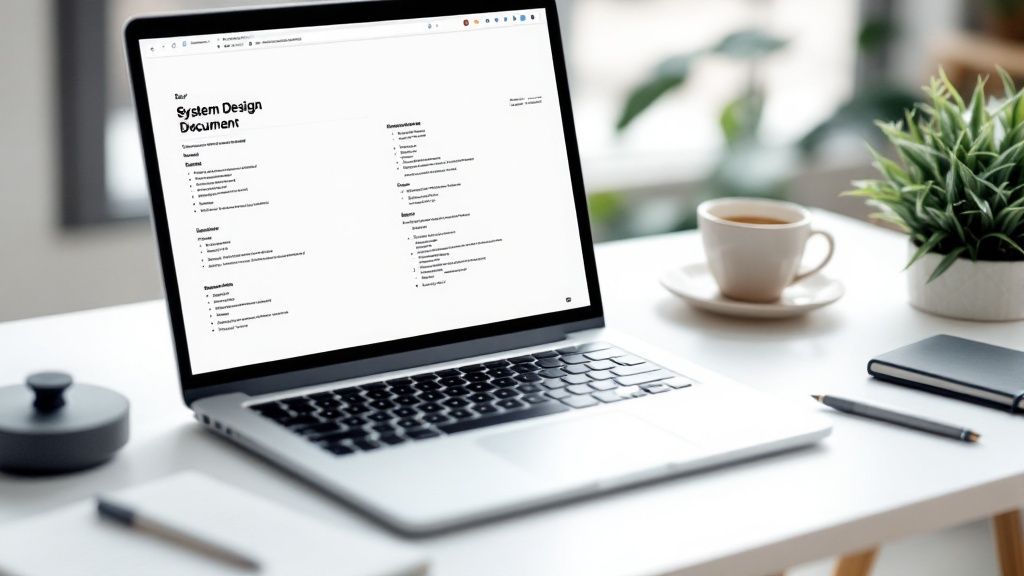 A software project is no different. Its complexity demands a clear, universally understood guide, and the system design document serves exactly that purpose. It translates abstract business goals into a concrete technical strategy, forcing everyone to think through critical decisions early—like choosing the right database, defining API contracts, and planning for future growth.