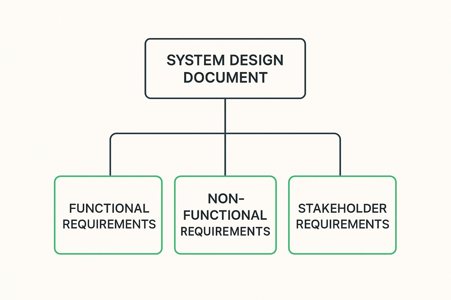 The hierarchy diagram below shows how an SDD organizes all the different project needs into one clear plan.