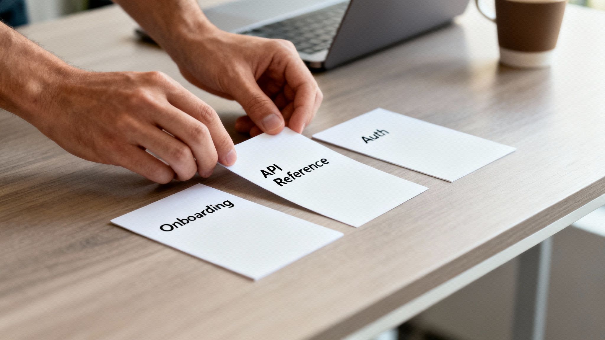 Structure these use cases around common goals your users have. For instance, instead of a generic “How to use the user endpoint” tutorial, create one titled “Building a User Profile Page.” This connects the dots and helps users build with confidence. For a deeper look at integrating this kind of content into your workflow, take a look at our practical guide to documentation as code.